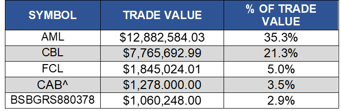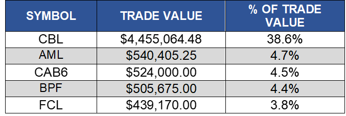 The top five share value leaders on BISX for the six-month period January 2, 2021 to June 30, 2021 with their contribution to total traded value displayed as a percentage were: