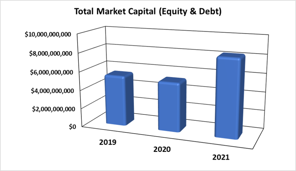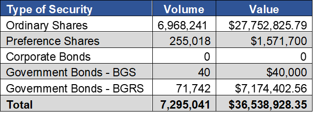 As at June 30, 2021 the market was comprised of 20 ordinary shares with a market capitalization of $4.273 Billion. In addition, there were 8 preference shares with a market capitalization of $249 Million, 11 Bahamas Government Stock bonds as well as Corporate Bonds with a face value of $470 Million and approximately 200 tranches of Bahamas Registered Stock (BRS) with a face value of $3.3 Billion.