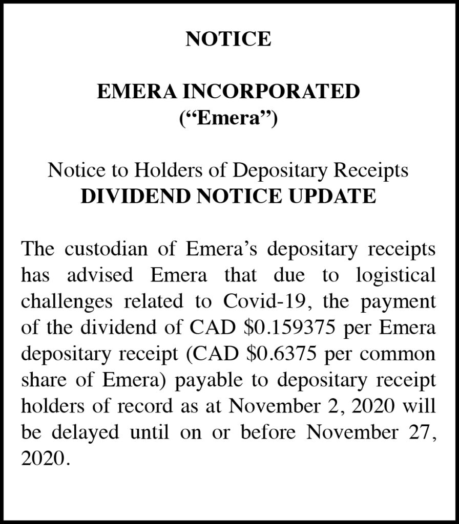 Emera Incorporated Dividend Delay Notice