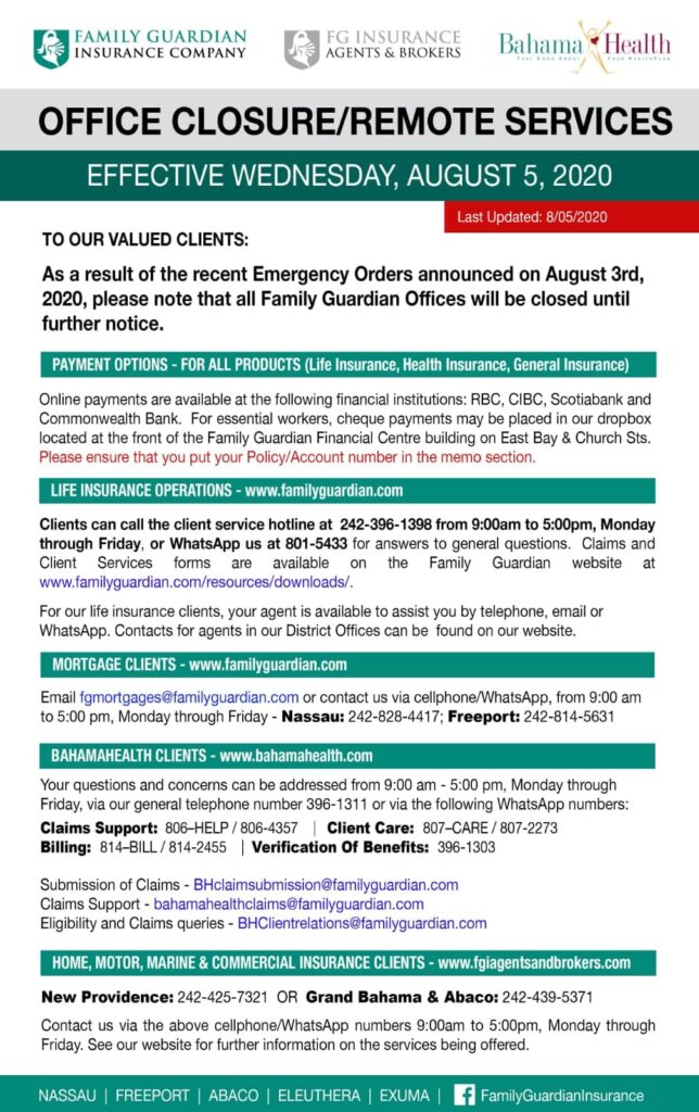 FamGuard Corporation Limited Office Closure